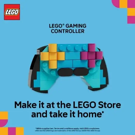 Visit a participating LEGO® Store on 10/12 from 12-2 PM to build this LEGO Gaming Controller and take it home. While supplies last. Terms & Conditions apply, visit www.LEGO.com/stores to find out more.
