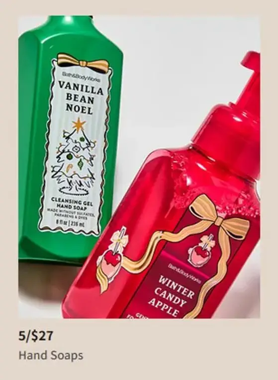 Shop in store and get hand soaps 5 for $27.